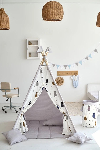 Вігвам з пухким килимом (подушка у ПОДАРУНОК) KASHTANCHIK "Ведмедики"вігвам з килимом та декором