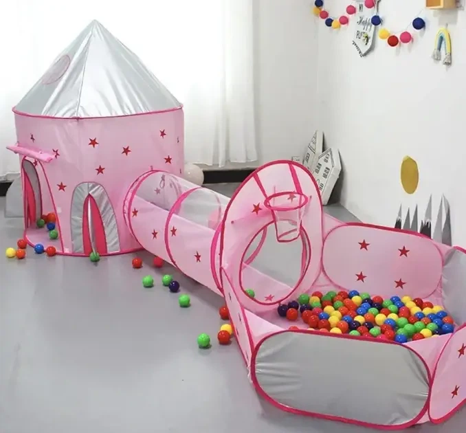 Дитячий ігровий будиночок-намет "Замок" 3в1 з тунелем та басейном під кульки рожева