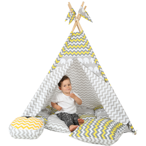 Вігвам дитячий ігровий намет будиночок з рівним килимком та подушкою 120х120х150 см М'ятний з жовтим