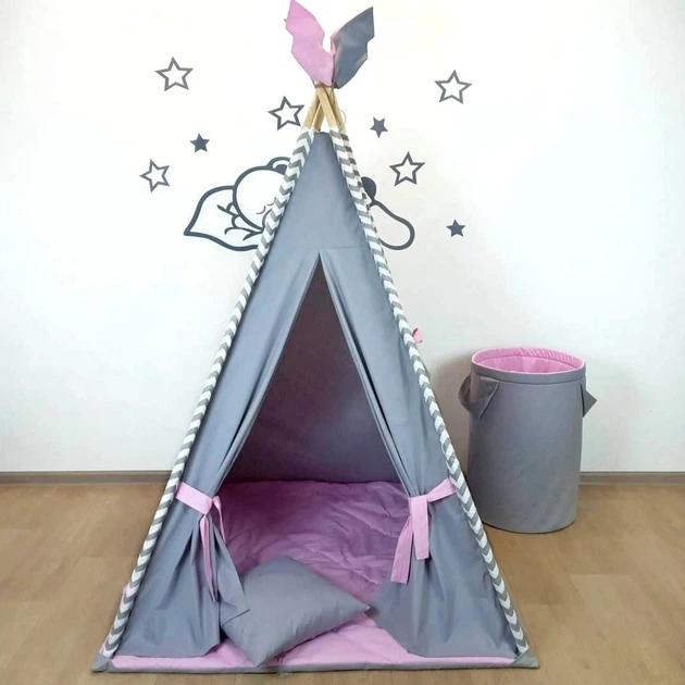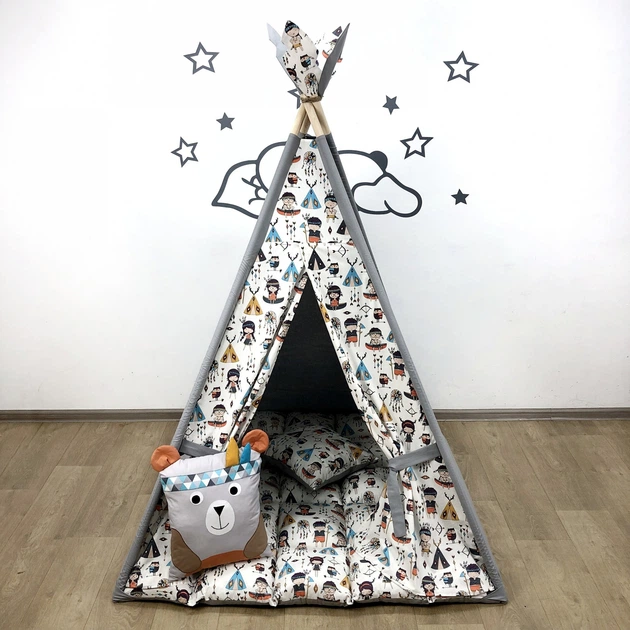 Вігвам дитячий "Індіанці" сірий з ведмедиком-індіанцем