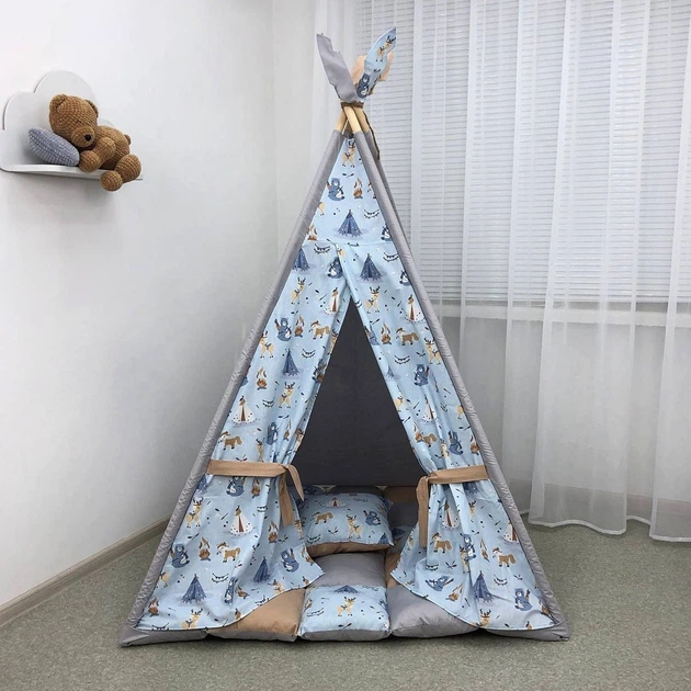 Вігвам дитячий "Звірята і транспорт" оливковий