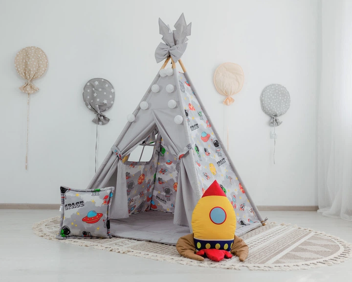 Вігвам намет для хлопчика Космос з килимком та подушками іграшками в дитячу для дому чи саду