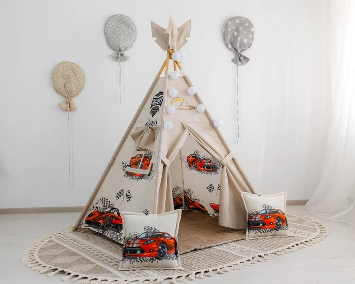 Вігвам намет для дитини Машинки з матрацом і подушками, дитячий намет в дитячу кімнату або вулицю