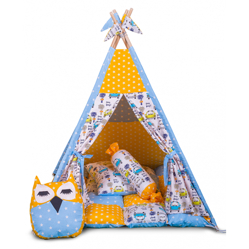 Вігвам дитячий будиночок намет для хлопчика БОН-БОН з подушками блакитний з машинками