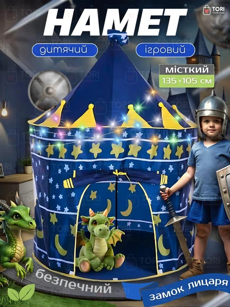 Дитячий ігровий намет Замок Лицаря, ігровий дитячий намет у вигляді сказачного замку 135х105 см, Синій (3047921794)
