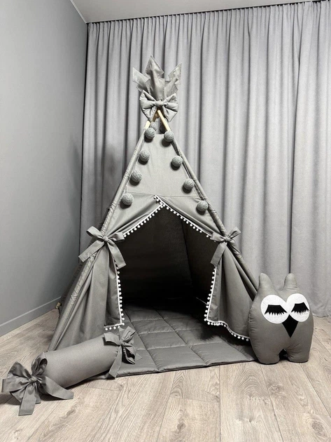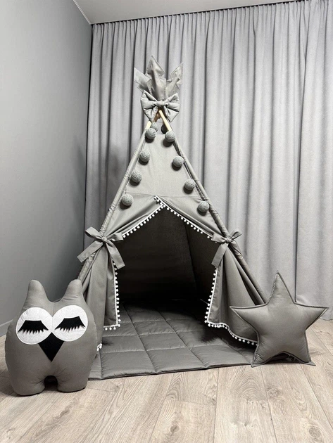 Вігвам Графіт зі стьобаним килимком, подушками зірочка та ведмежа Повний комплект 0931