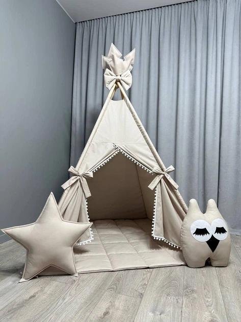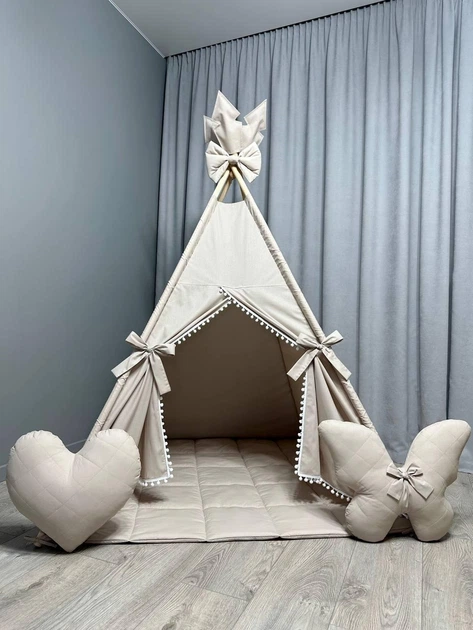 Вігвам-намет Ніжний беж 4 зі стьобаним килимком Повний комплект 0179
