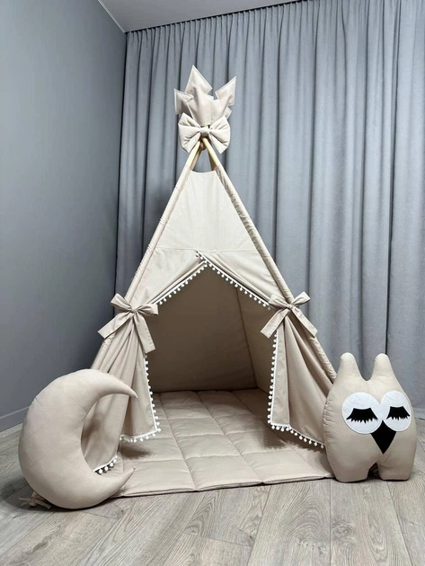 Вігвам дитячий Ніжний беж 2 зі стьобаним килимком Повний комплект 0143