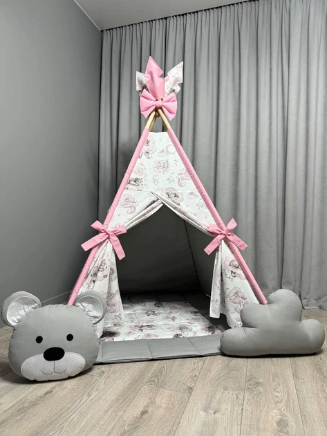 Вігвам Ведмедики на рожевих хмарах 1 зі стьобаним килимком Повний комплект 0163