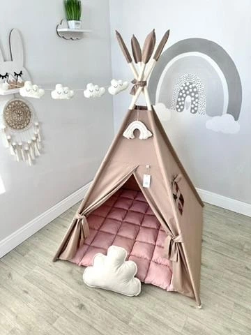 Вігвам дитячий Ніжний беж 2 зі стьобаним килимком Повний комплект 0143