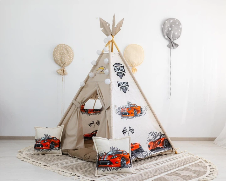 Вигвам для хлопчика з машинками New cars БОН БОН + подушки. Намет будиночок для хлопчика для дому чи вулиці