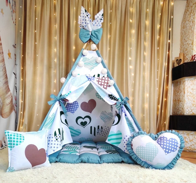 Вігвам намет М'ятний бум БОН БОН + подушки іграшки. Намет будиночок для дівчинки та хлопчика для дому та вулиці