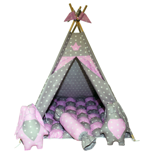 Вігвам Хатка комплект Бонбон Принцеса Рожевий з сірим з подушками