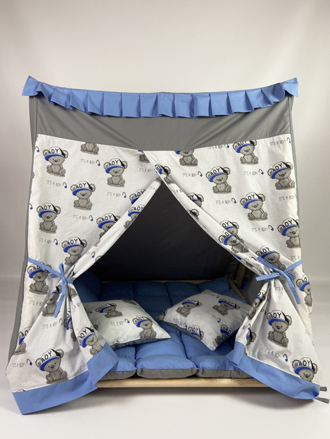 Дитячий "Вігвам-накидка" у повній комплектації голубого кольору з ведмедиками від виробника зі стійкою (gs-8755)