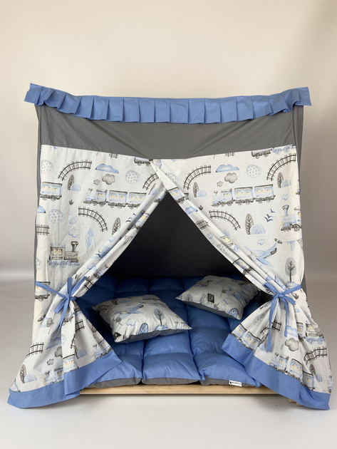 Вігвам Хатка комплект Захід Білий з синім з подушкою