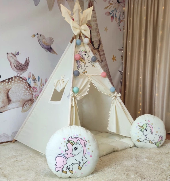 Намет Вігвам для дітей Кольорові єдноріжки БОН БОН + подушки, Вігвам будиночок для дівчинки для дому чи вулиці