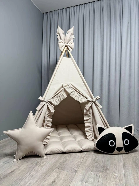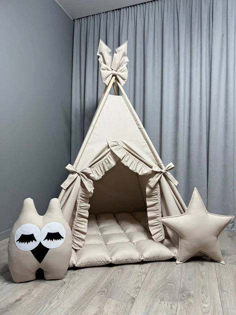 Вігвам намет дитячий Бежевий будиночок 4 з матрасиком БОНБОН Повний комплект 0197