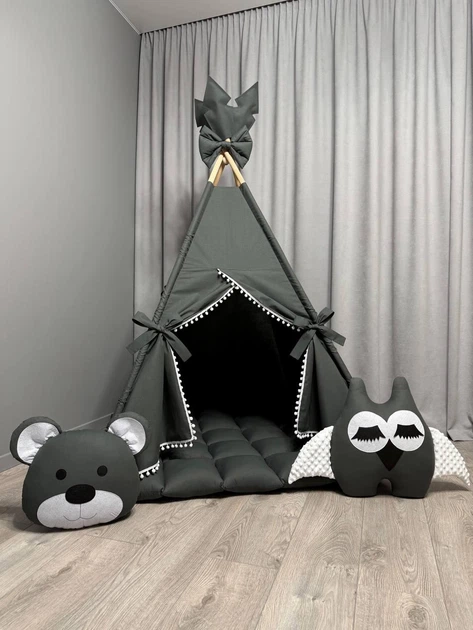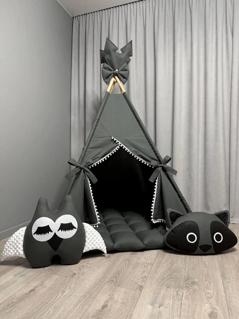 Вігвам Графіт з матрасиком БОНБОН подушками совеня та єнотик Повний комплект 0917