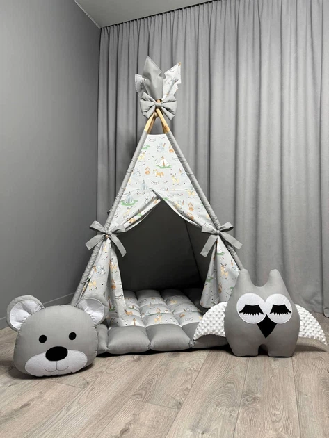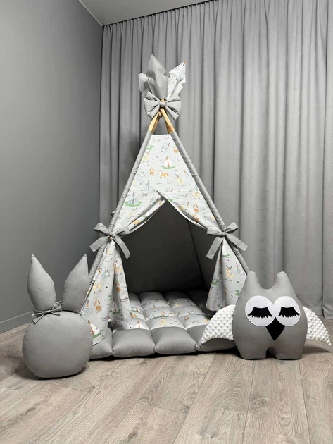 Вігвам Звірята на сірому 11 з матрасиком БОНБОН Повний комплект 0831