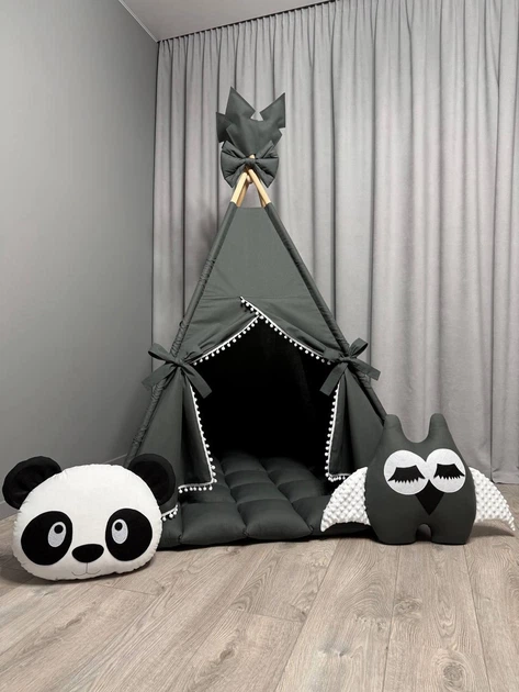 Вігвам Графіт з матрасиком БОНБОН подушками совеня та пандочка Повний комплект 0913