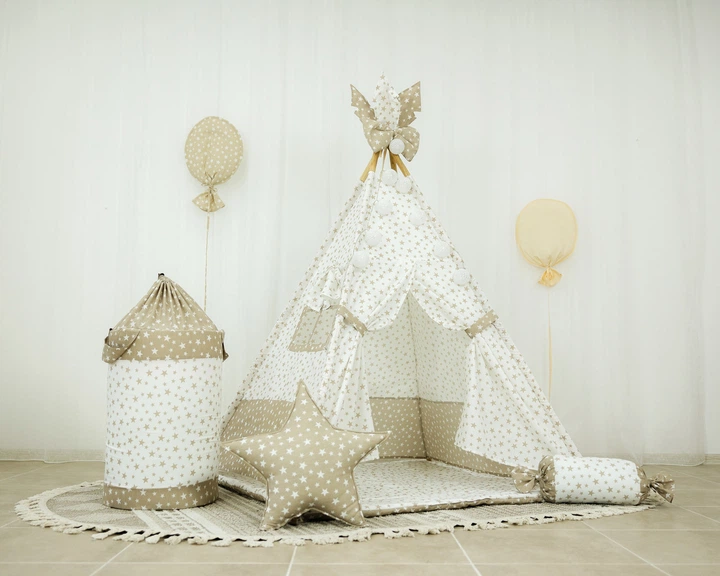 Вігвам - Дитячий намет, Палатка, Вигвам, Домик "Wild and free" колір Бежевий, Сірий, + 2 подушки + система антискладання