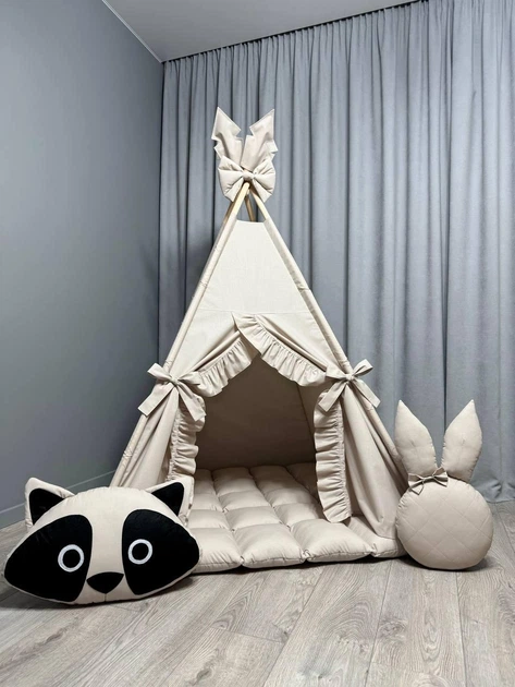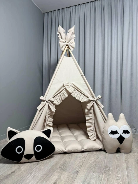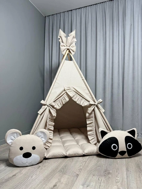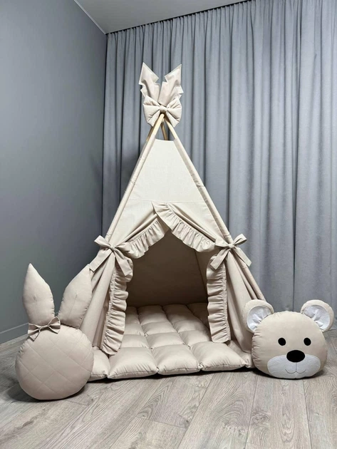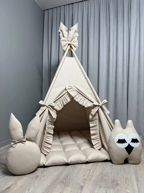 Вігвам для дівчинки Бежевий будиночок 17 з матрасиком БОНБОН Повний комплект 0167