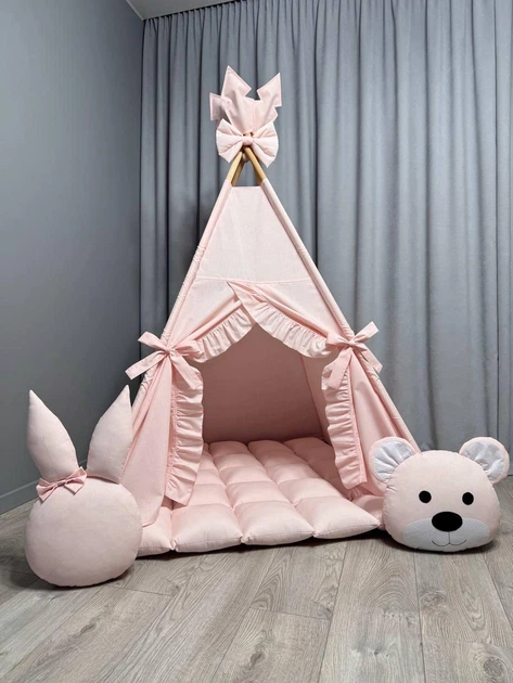 Вигвам для дівчинки Світло рожевий з матрациком БОНБОН подушками зайчик та ведмежа Повний комплект 0874