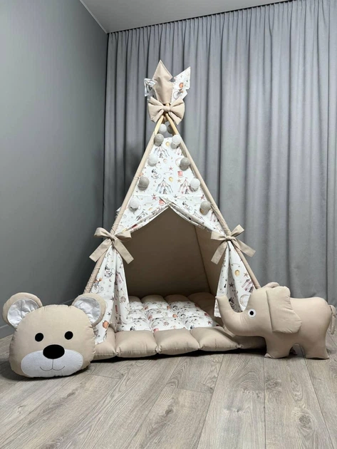 Вігвам Звірята на сірому 4 з матрасиком БОНБОН Повний комплект 0817