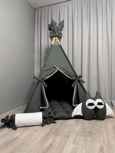 Вігвам Графіт з матрасиком БОНБОН подушками єнотик та ведмежа Повний комплект 0901