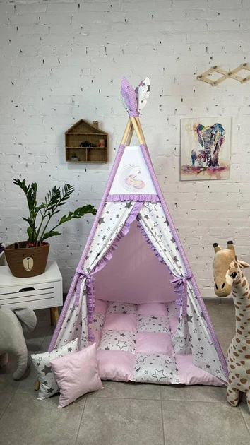 Вігвам - Дитячий намет "Магічний зайчик 2 " колір Фіолетовий + 2 подушки + система антискладання