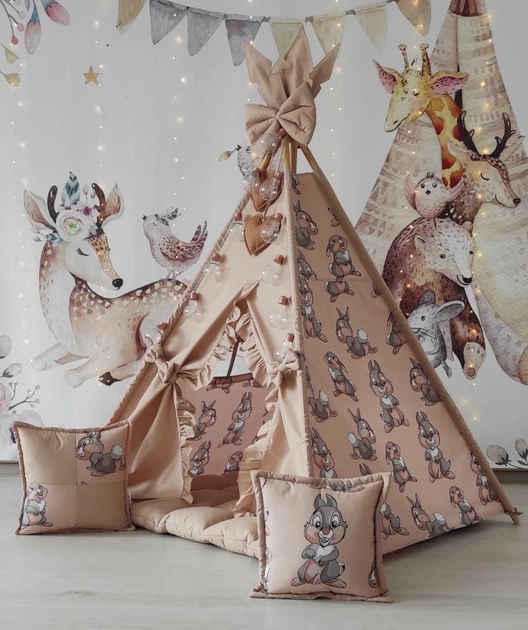 Вігвам намет для дитини з текстилю Зайчики марас БОН БОН з подушками в кімнату або на вулицю