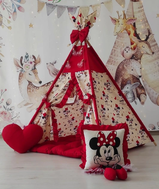 Вігвам для дитини Мікі Маус матрац БОН БОН 115 см*115 см, 2 подушки, прапорці, бант та сумка для зберігання з текстилю