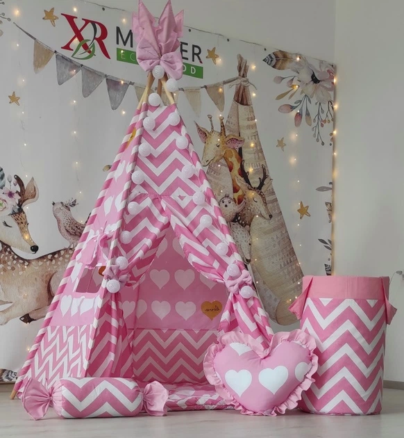 Вігвам для дівчинки Рожева насолода 1 з матрасиком плюш minky БОНБОН Повний комплект 0653