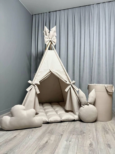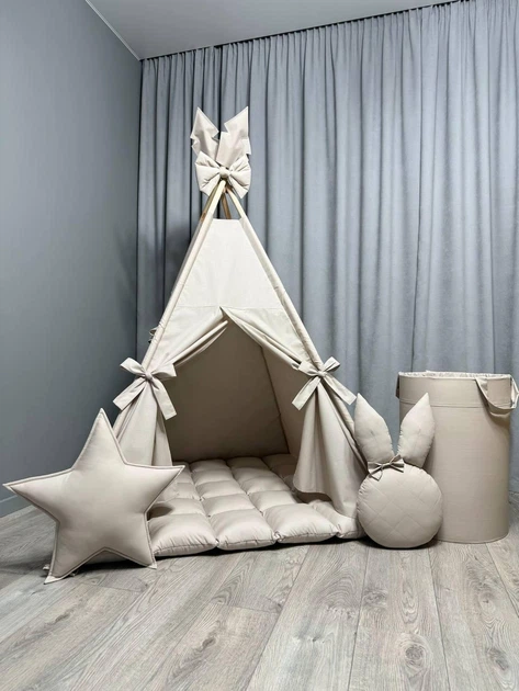 Вігвам Бежевий 4 з матрасиком БОНБОН та кошиком для іграшок Повний комплект 0240
