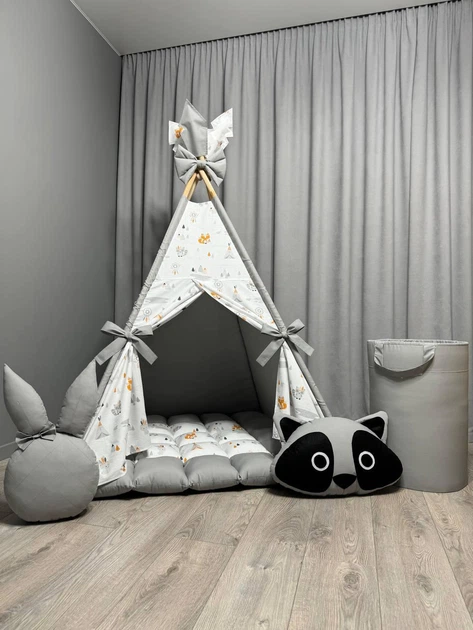 Вігвам Лисички та Єнотики 1 з матрасиком БОНБОН та кошиком для іграшок Повний комплект 0630