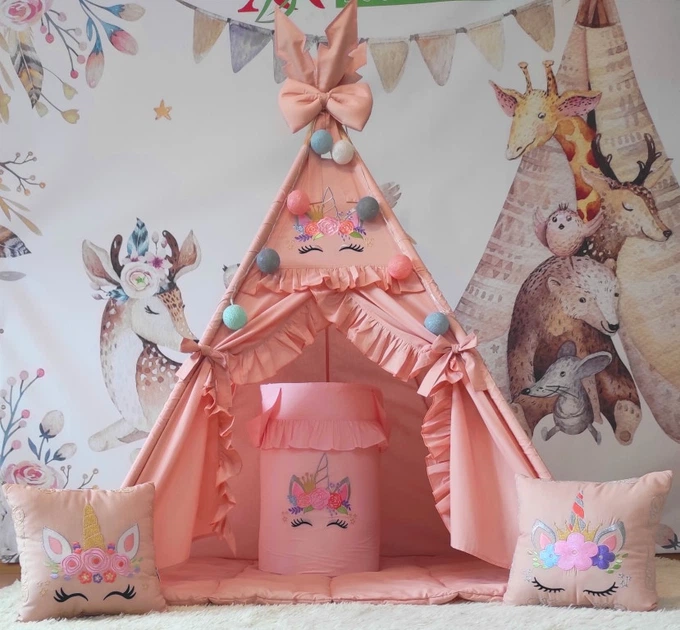Вігвам Замок принцеси з матрациком БОНБОН і кошиком подушки єдиноріжок та зайчик Повний комплект 0888