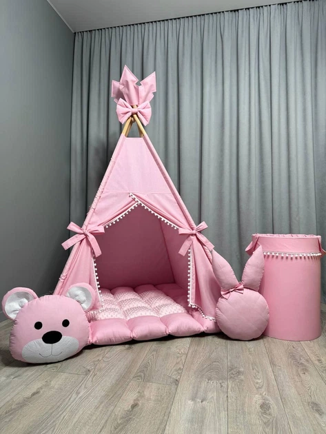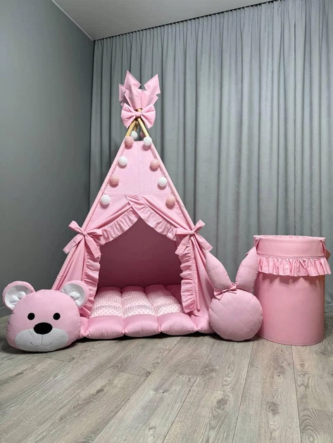 Вігвам для дівчинки Рожева насолода 7 з матрасиком плюш minky БОНБОН та кошиком для іграшок Повний комплект 0666