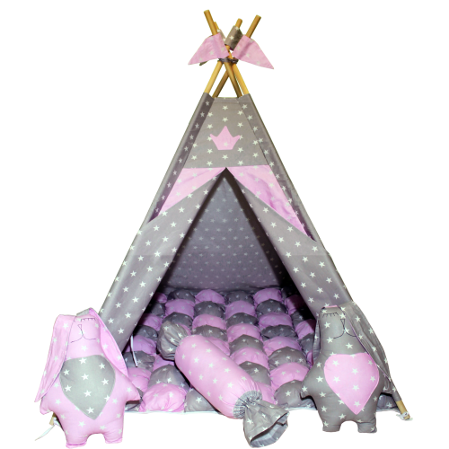 Вігвам Хатка комплект Бобон Принцеса Рожевий із сірим із подушками — Великий