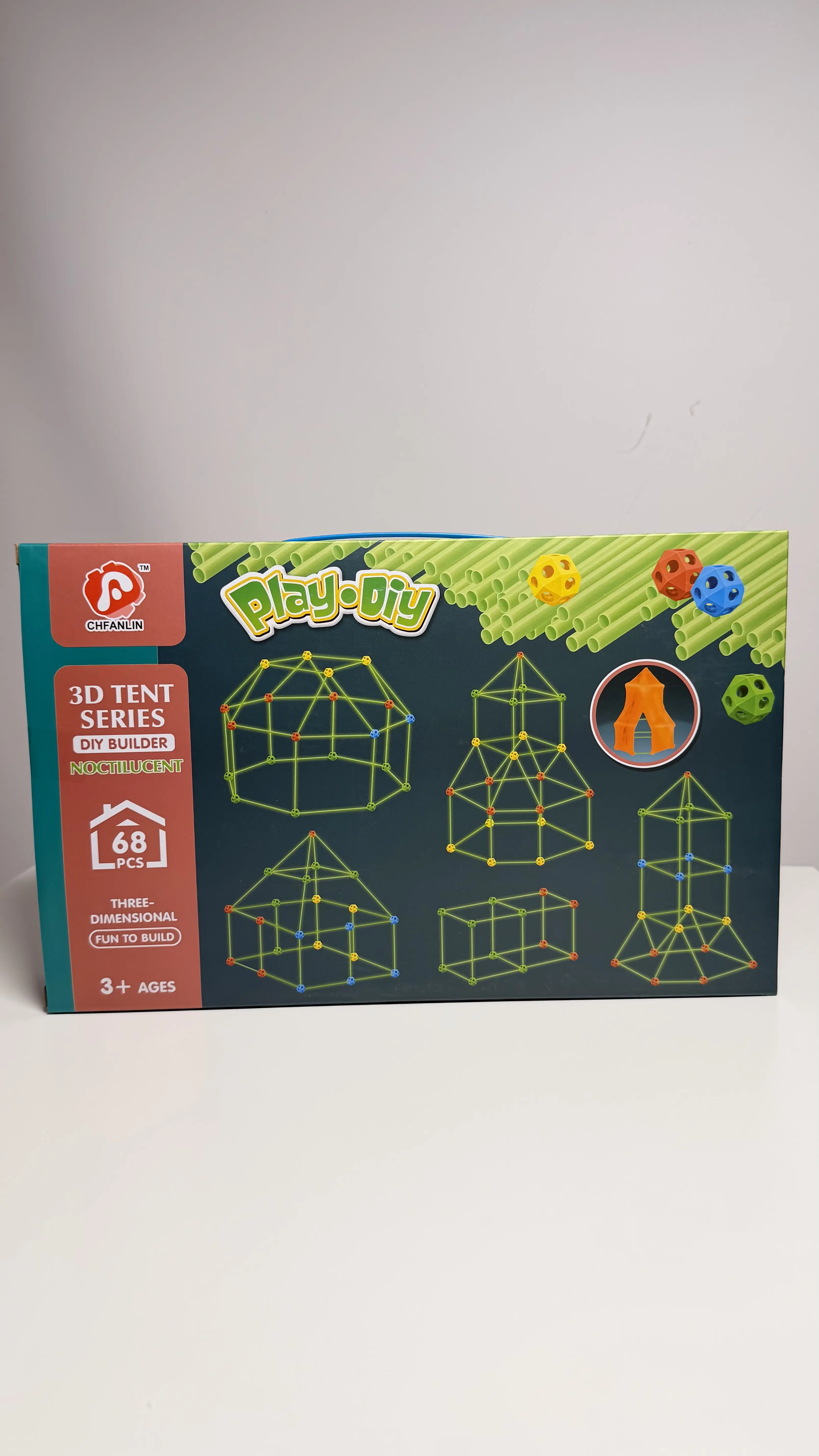 Намет-конструктор 68 деталей, люмінесцентні палички, світитися у темряві, одеяло, в коробці