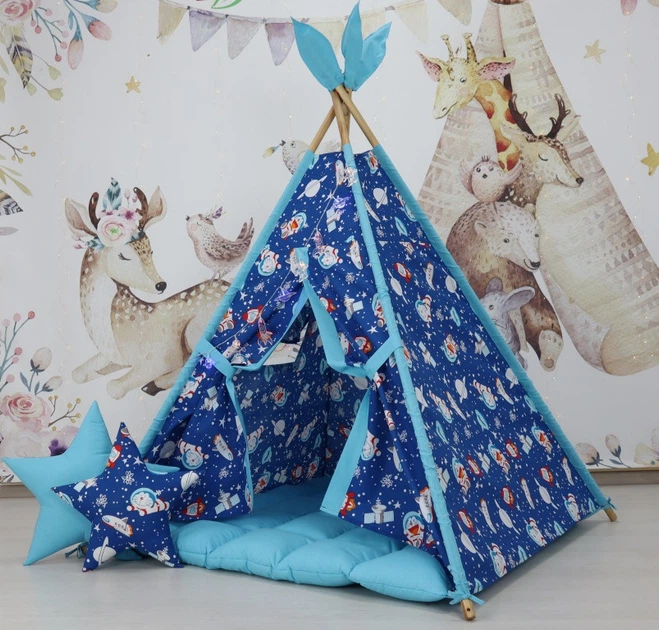 Вігвам намет Космонавт БОН БОН з кошиком для іграшок та матрацом 115 см*115 см з текстилю в кімнату або на вулицю