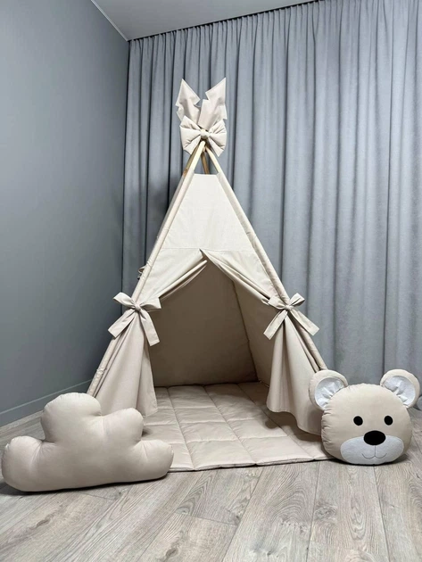 Дитячий вігвам Бежевий 3 зі стьобаним килимком Повний комплект 0065