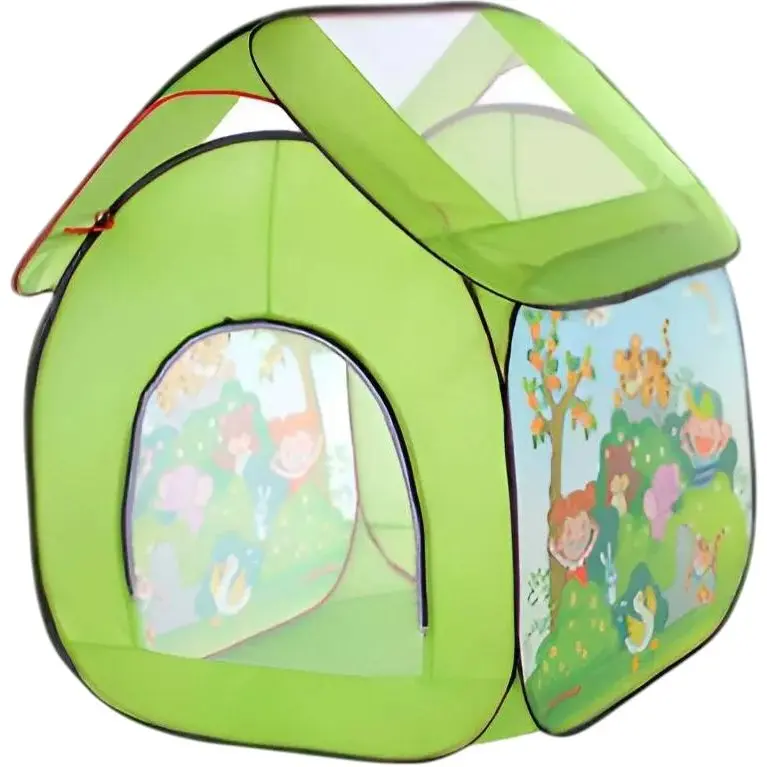 Намет M 3756: Просторий домик для відпочинку на відкритому повітрі, зеленого кольору з принтом саду з дітьми