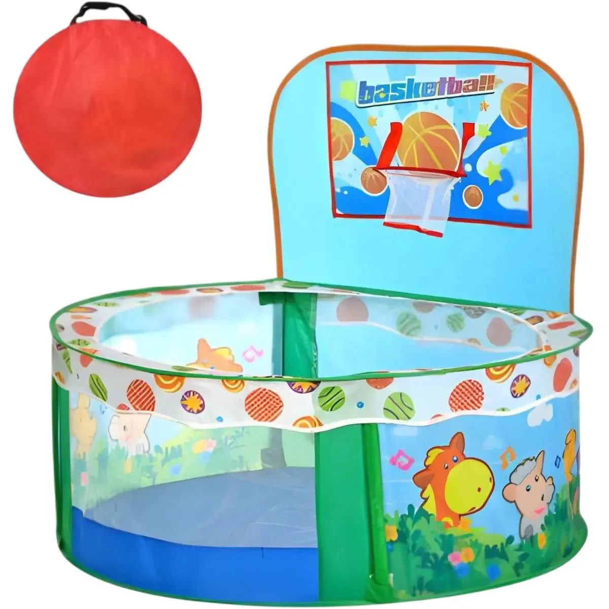 Дитячий намет-манеж Intex MR 1489 Веселі звірята з баскетбольним кільцем, у сумці