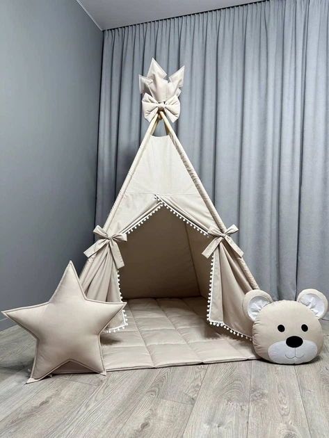 Вігвам-намет Ніжний беж 4 зі стьобаним килимком Повний комплект 0179