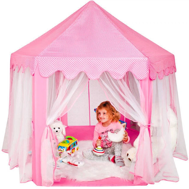 Ігрова дитяча палатка шатер рожевого кольору з шторами Kruzzel 23869 – великий намет для дівчинки, 135140 см