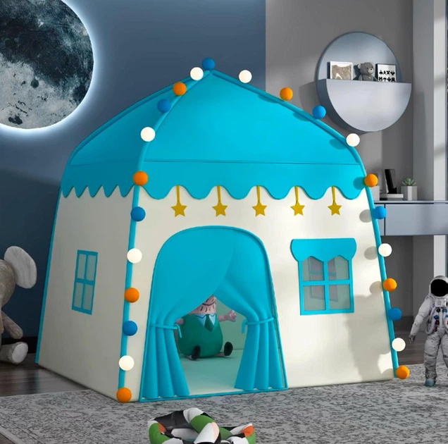 Дитячий ігровий намет будиночок, палатка + світлодіодні ліхтарі 130х 130 х 100 см Blue