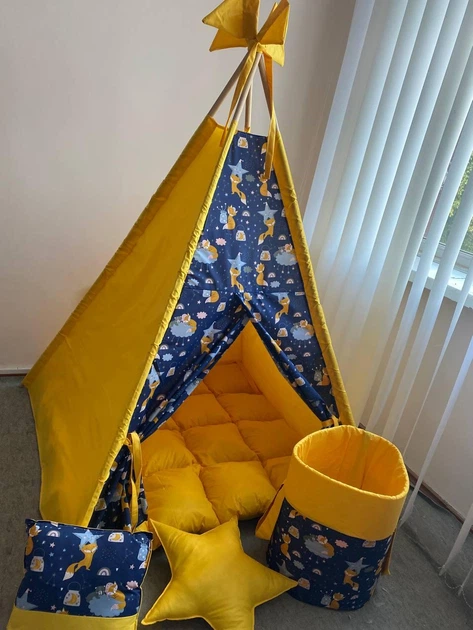 Вігвам-намет Viksi Piksi "Темний ліс" | Дитячий комплект із килимком та подушкою | 100 бавовна, дерев'яний каркас