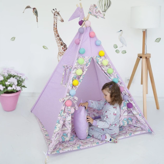 Вігвам Хатка комплект Єдинороги з м'яким килимком - Малятко