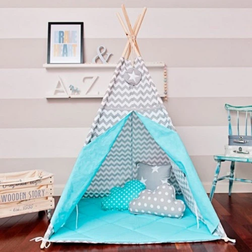 Вігвам Хатка комплект Сіра м'ята з подушками — великий