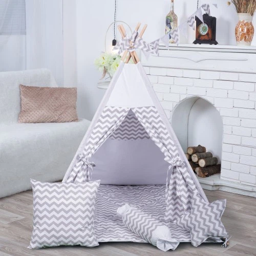 Вігвам Хатка комплект Сірий зигзаг із подушкою — Великий